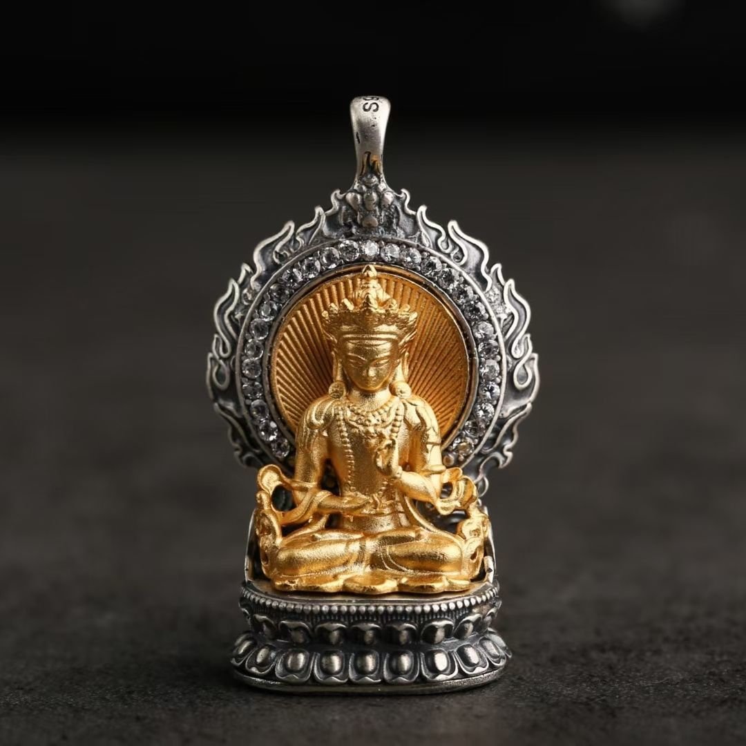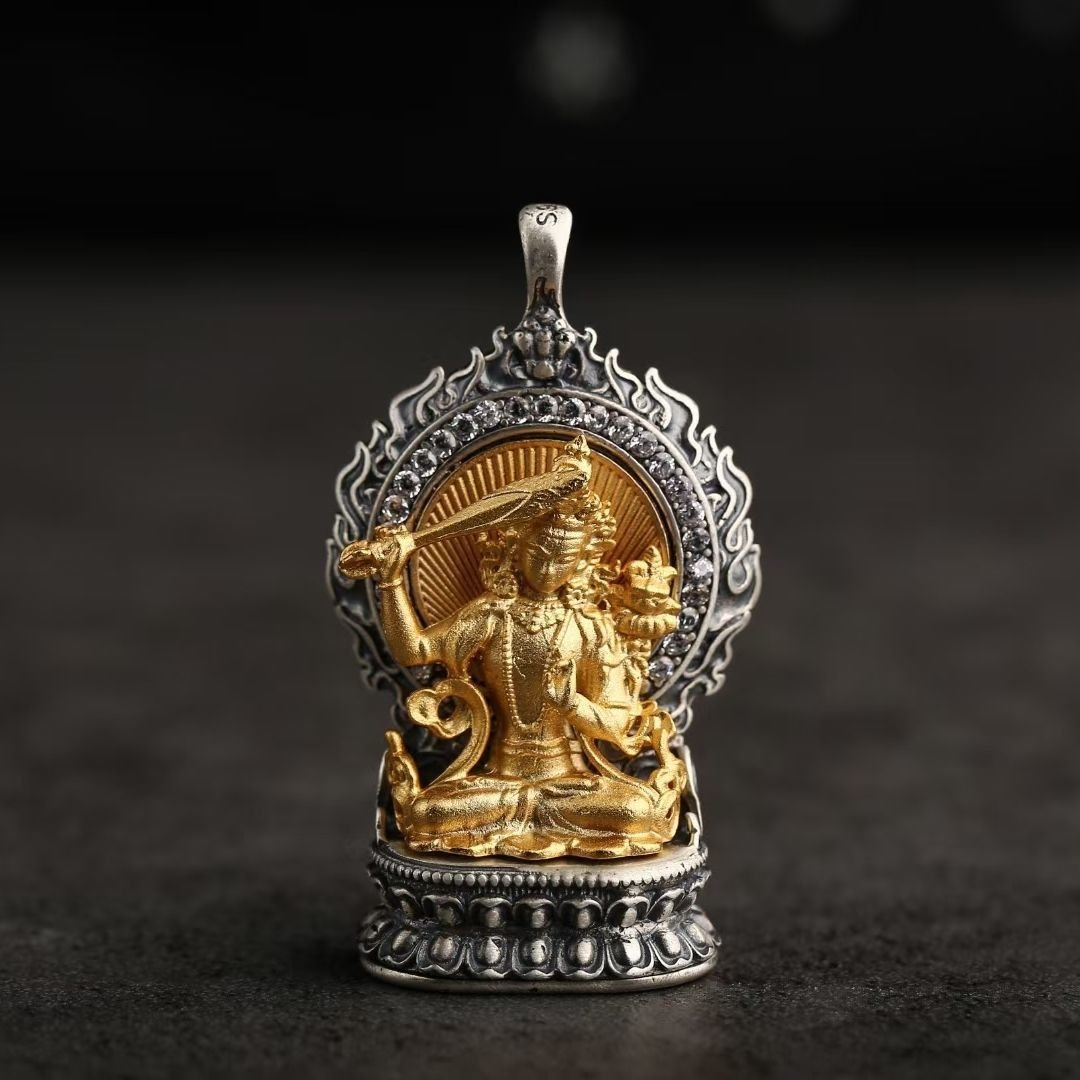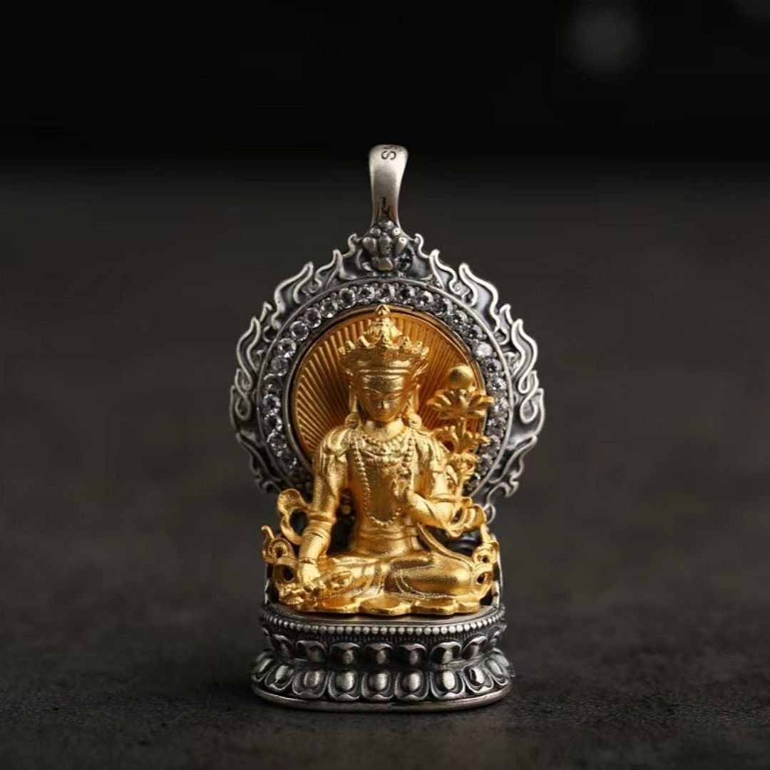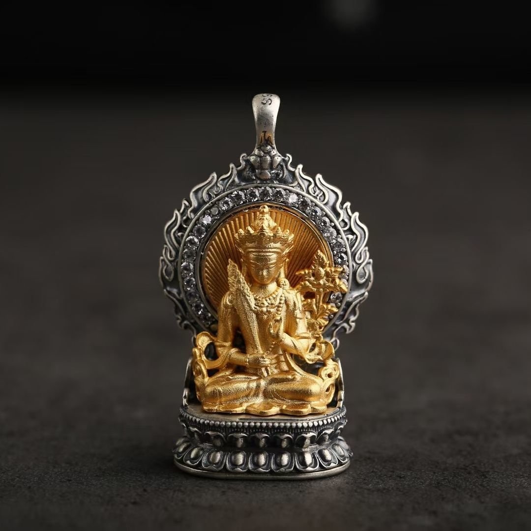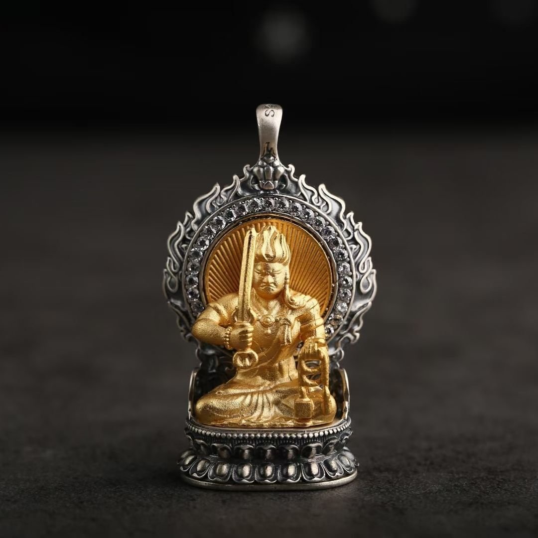 For example, those born in the Year of the Rat are under the guardianship of Vaishravana, the Guardian of the North, with Sakyamuni Buddha as their Birth Buddha. The Ox and Tiger are protected by Manjushri, the Bodhisattva of Wisdom, and their Birth Buddha is Amitabha Buddha. Each deity and Buddha boasts distinct attributes and iconography that are masterfully reflected in the jewelry. Manjushri, often depicted wielding a sword to slash through ignorance and clutching a book of wisdom, symbolizes the relentless pursuit of knowledge and enlightenment. Vaishravana, portrayed with a treasure vase, embodies wealth and protective power.