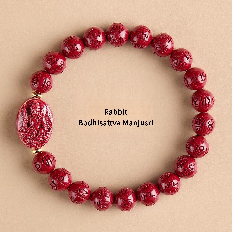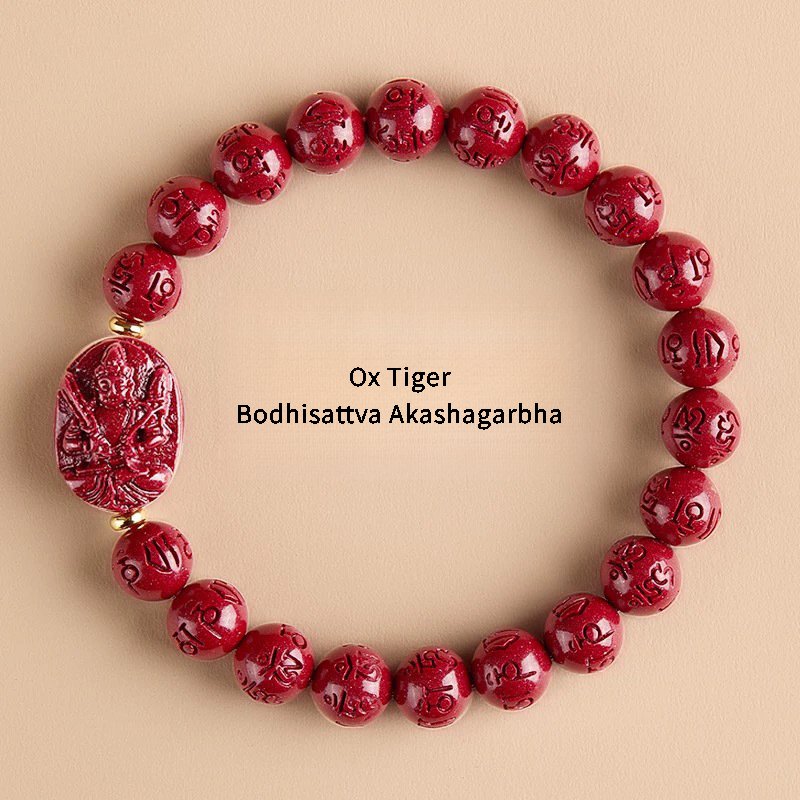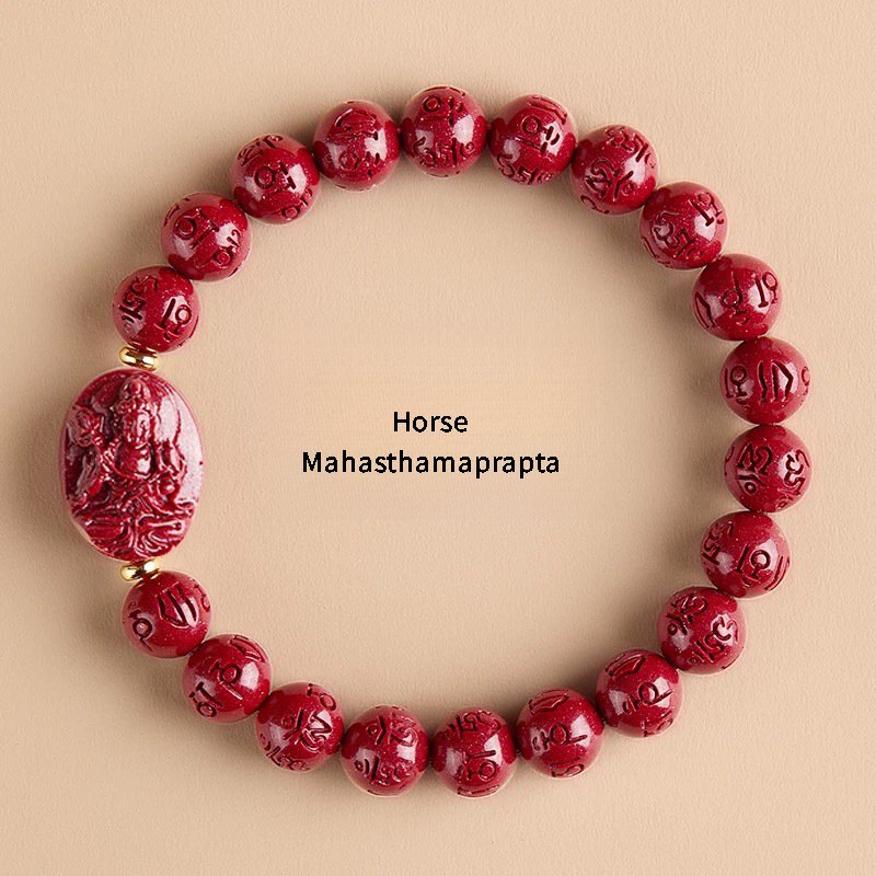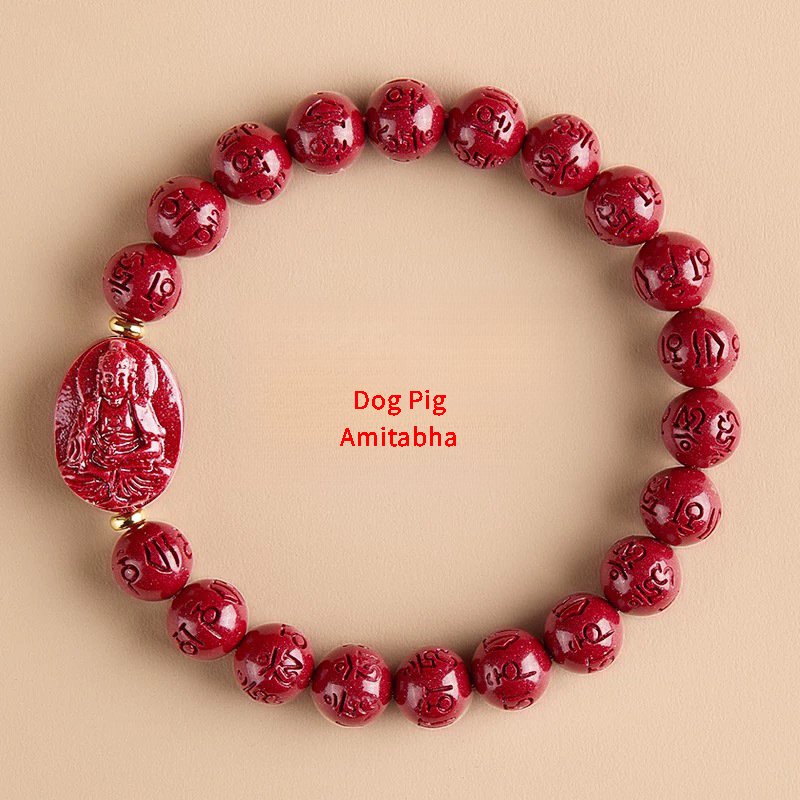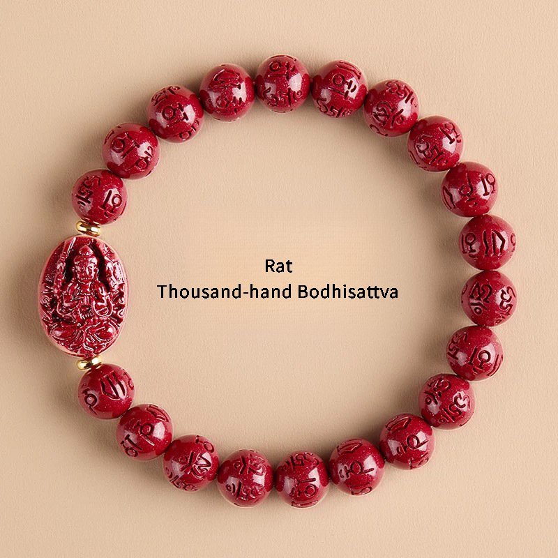 Buddha jewelry:Cinnabar Chinese Zodiac Birth Buddha Six-Syllable Mantra Purple Gold Sand Bracelet, Eight Great Guardian Deities Fortune-Transforming Bracelet