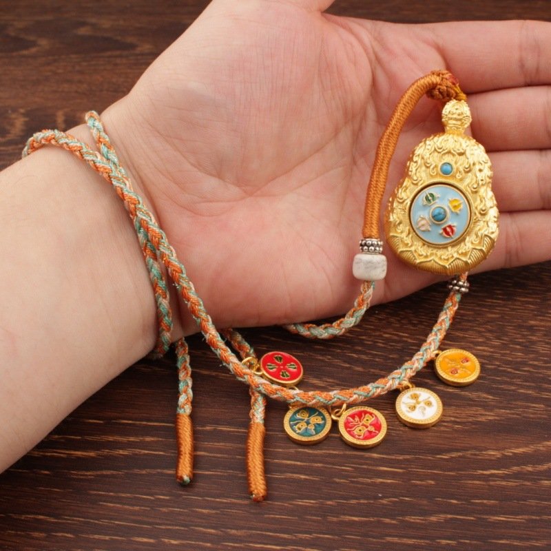 Both sides of the gourd-shaped pendant are adorned with exquisite Thangka art. Thangka is a traditional Tibetan Buddhist painting technique that uses natural pigments derived from minerals, plants, and even gemstones to create bright and long-lasting patterns. Each side tells a unique sacred story. One side depicts the Eight Great Guardian Deities, each with distinct characteristics and expressions. From Manjushri holding a sword of wisdom to Vaishravana carrying a treasure basin, these deities are portrayed in meticulous detail, with their postures and symbols strictly following ancient iconographic traditions. The other side displays the 12 Chinese zodiac animals, each paired with their corresponding Birth Buddha. For example, the Rabbit corresponds to the compassionate Guanyin Bodhisattva, and the Dragon corresponds to Ratnasambhava. This double-sided design allows the wearer to have both universal protection and exclusive spiritual guidance wherever they go.