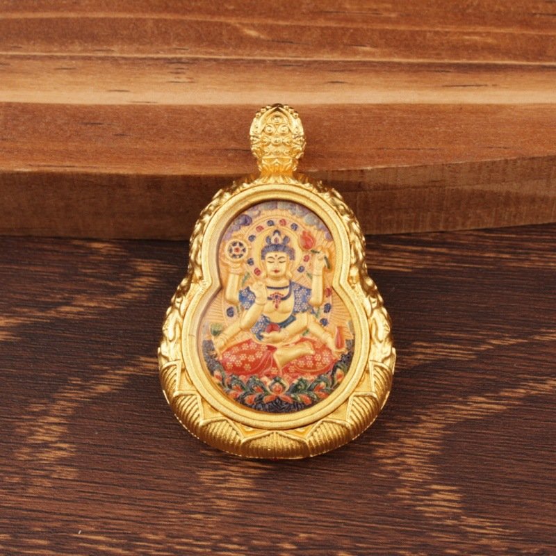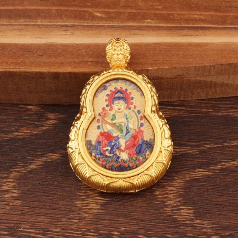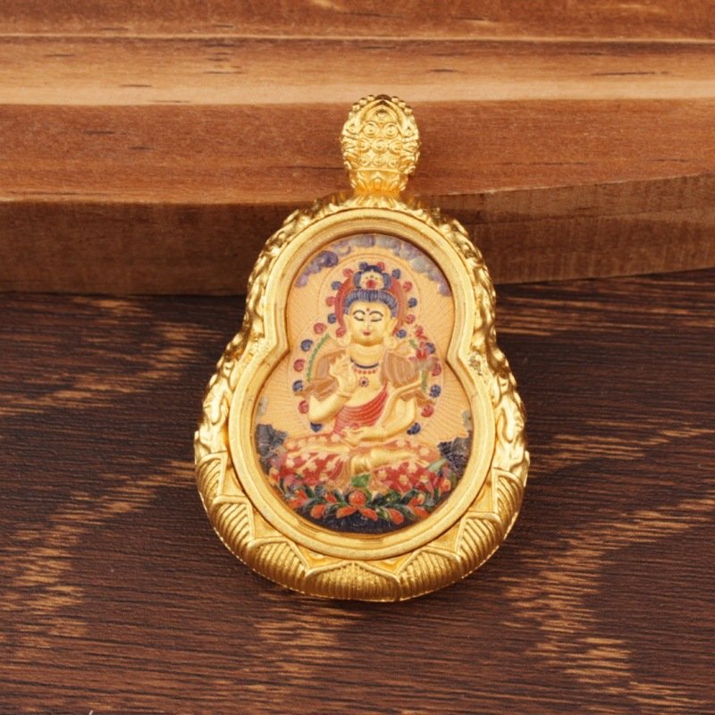The gourd shape of this pendant is so symbolic¡ªrepresenting good fortune¡ªand the double-sided thangka design is stunning! One side features the Eight Great Guardian Deities, the other my zodiac year¡¯s guardian Buddha, both painted with vibrant colors and tiny details that show incredible artistry. The pendant is well-made, with a sturdy frame that protects the thangka, and it has a nice weight to it. The chain is strong and comfortable, and I¡¯ve worn it every day since I got it. The paint hasn¡¯t smudged or faded, and the gourd shape makes it stand out from other pendants. It¡¯s a unique, meaningful piece that combines tradition and style perfectly.