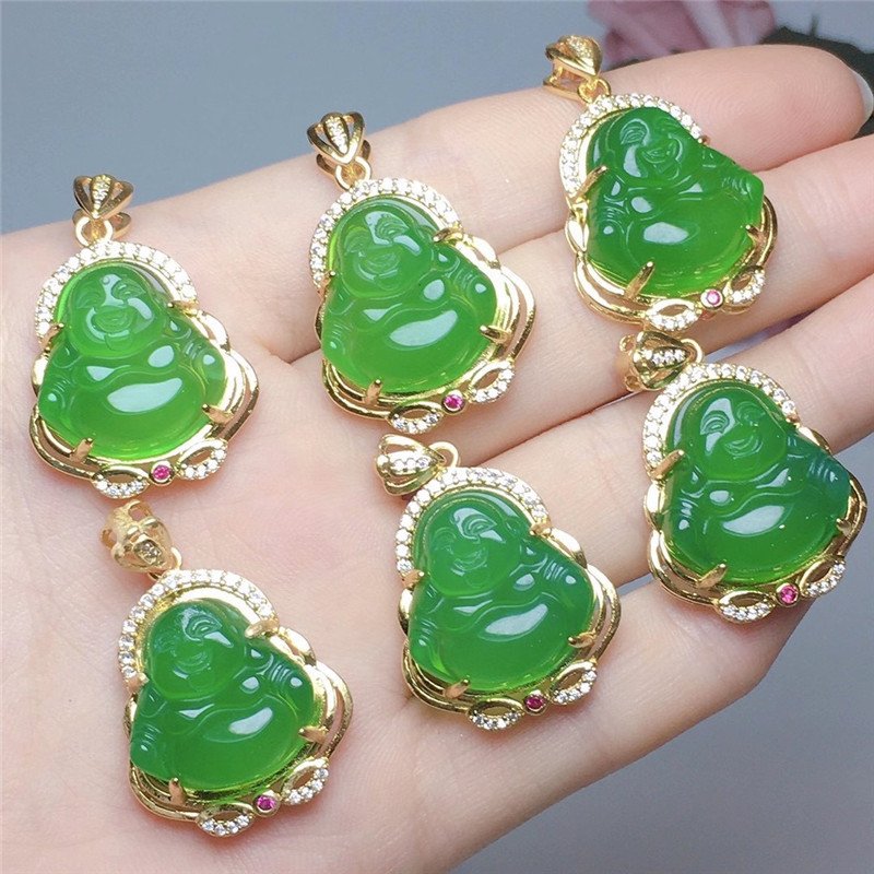 High-ice inlaid green chalcedony Buddha pendants and green agate Maitreya Buddha jade pendants are exquisite jewelry pieces that fuse the translucent allure of gemstones with the serene symbolism of Buddhist figures, embodying both visual splendor and spiritual profundity.