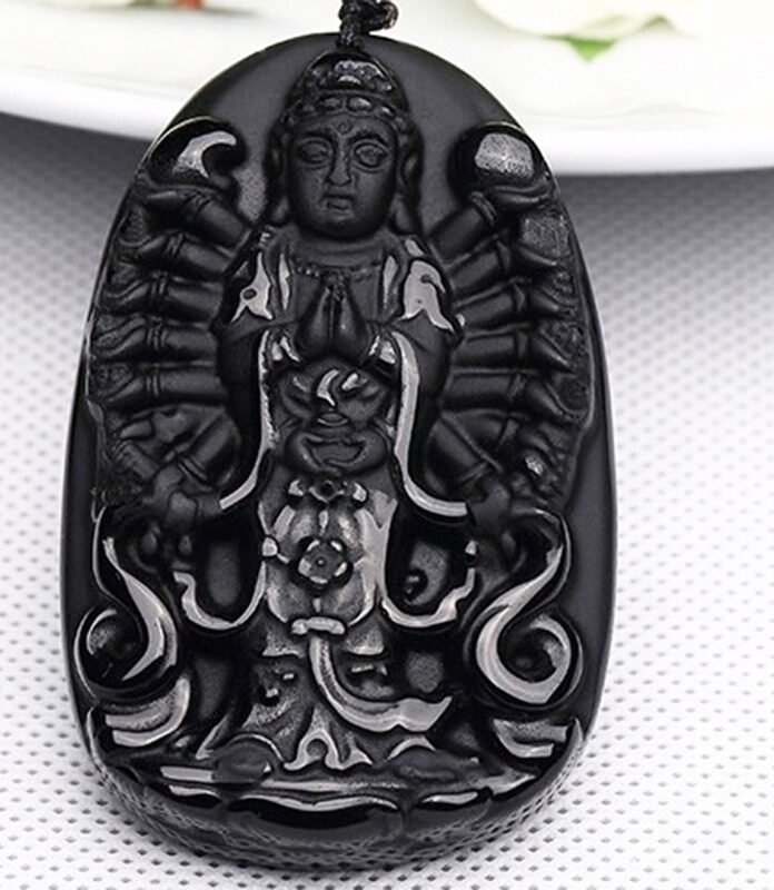 1 review for Buddha jewelry:Obsidian Auspicious Guanyin Buddha Pendant, Black Pi Xiu Pendant