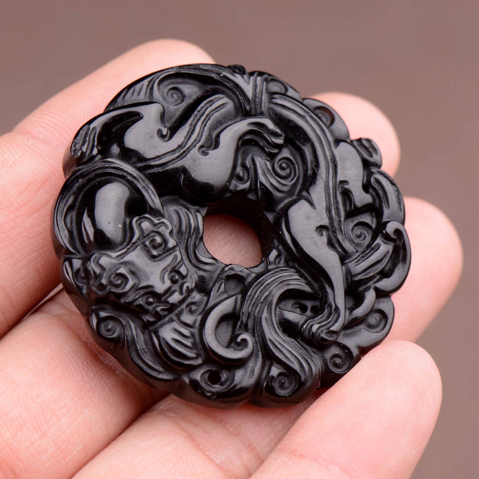 This obsidian Guanyin and Pi Xiu pendant is amazing! The obsidian is sleek and shiny, with a deep black color that looks so elegant, and both the Guanyin and Pi Xiu are intricately carved¡ª you can see every detail clearly. The pendant has a nice weight to it¡ª not too heavy, but substantial enough to feel high-quality. The chain is strong and comfortable, and the pendant sits perfectly at my collarbone. I¡¯ve worn it every day, and it hasn¡¯t scratched or faded¡ª still looks as good as new. It feels like a protective amulet, and I love that it combines two powerful symbols of luck and safety.