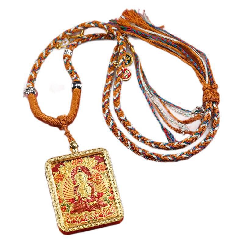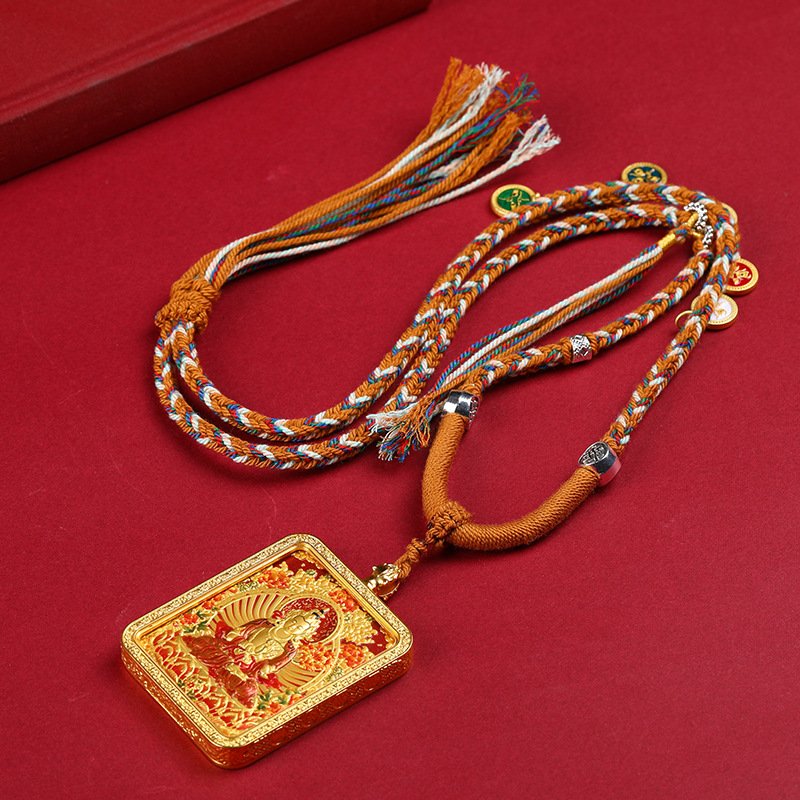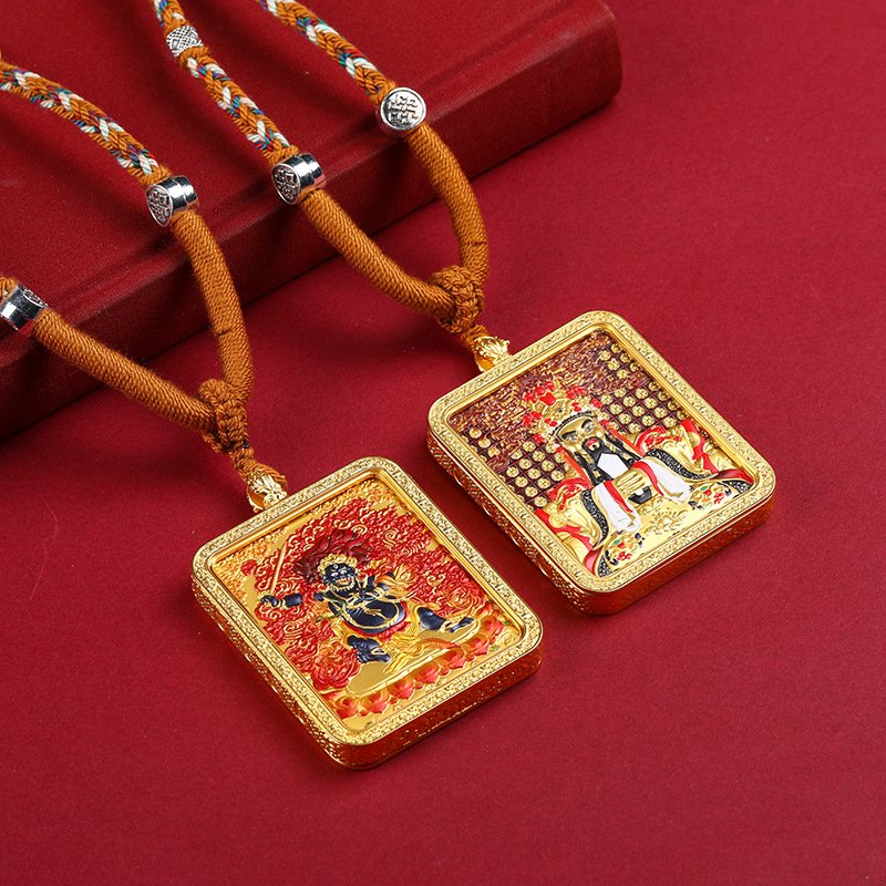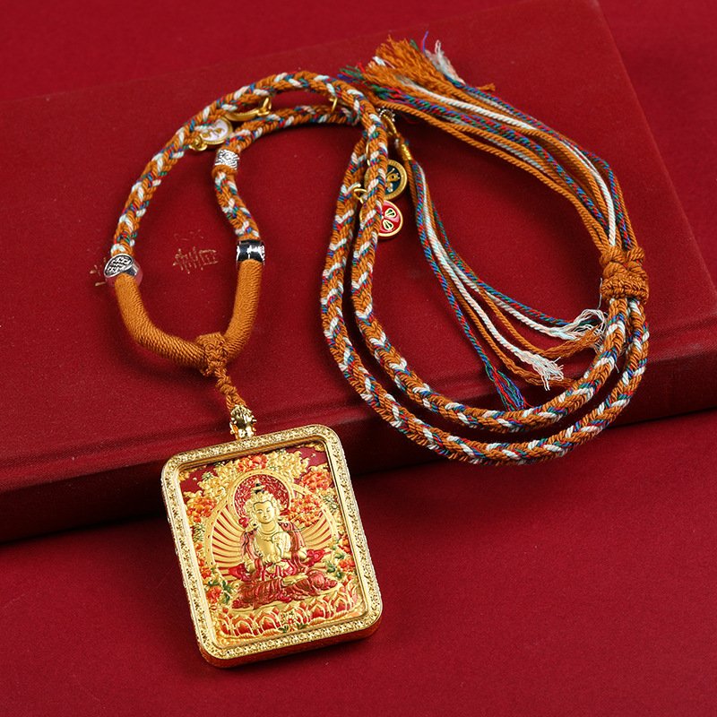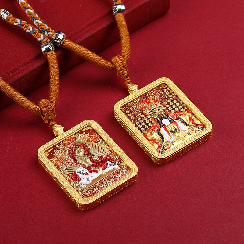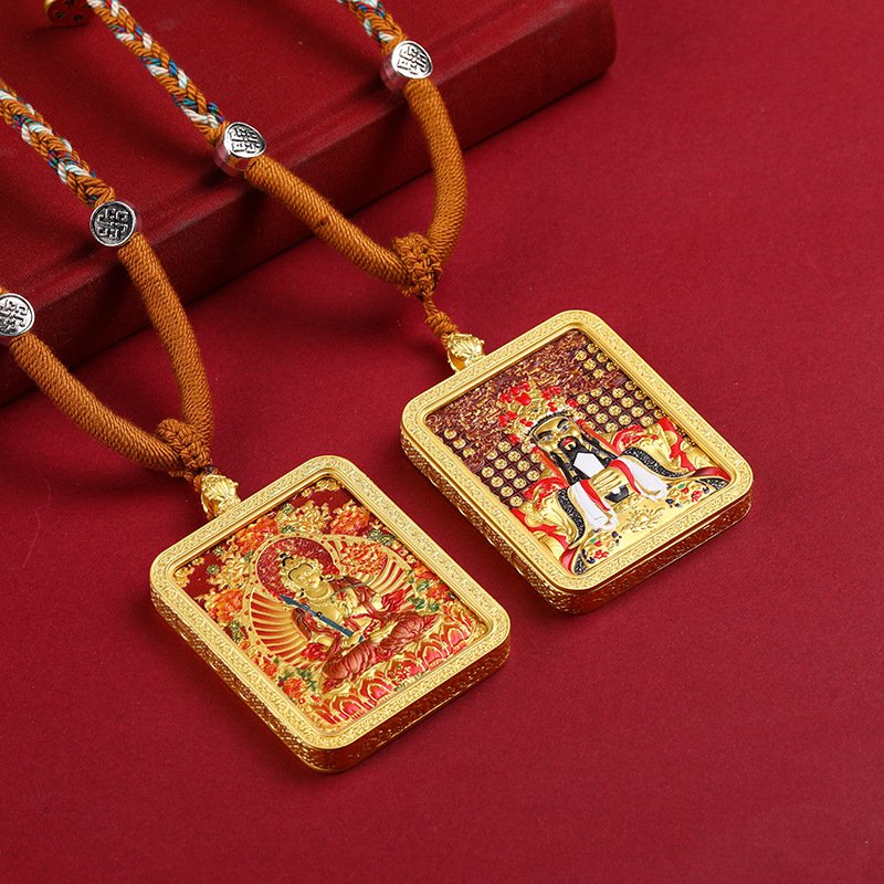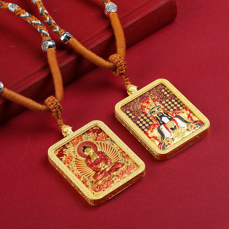 Thangka—Tibetan Buddhist scroll painting renowned for its intricate symbolism—finds new expression here. The pendant’s relief technique creates a striking 3D effect, making the Birth Buddha and Eight Great Guardian Deities appear to emerge from the surface. Artisans have meticulously carved every detail: the fluid drapery of robes, the compassionate gaze of the Buddha, the resolute stance of the guardians—each element breathing life into the piece.