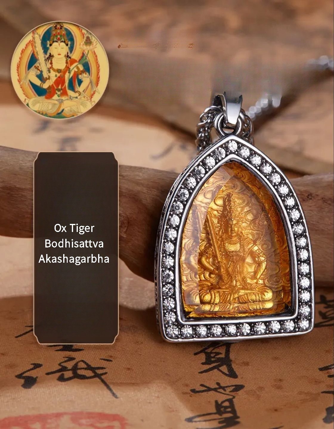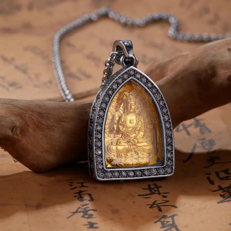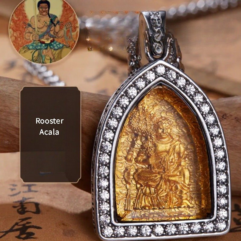 Adorning the pendant are carefully placed zircon stones, adding a touch of brilliance and sophistication. Zircon, with its dazzling clarity and fire, mimics the sparkle of precious gems, elevating the pendant’s visual appeal. These stones are strategically set to highlight key elements of the design—perhaps framing a zodiac animal or accentuating the robes of a guardian deity—creating a captivating play of light. Beyond their aesthetic value, zircon has long been associated with positive energy, believed to enhance clarity of thought and attract prosperity, further enriching the pendant’s symbolic meaning.