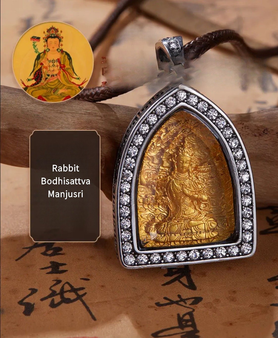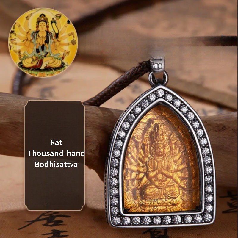 At the core of the pendant’s design are the 12 Chinese zodiac animals and the Eight Great Guardian Deities, each rendered with meticulous precision. The zodiac animals, from the nimble Rat to the loyal Dog, are depicted in their characteristic forms, symbolizing the unique traits and fortunes associated with each birth year. Beside each zodiac animal stands its corresponding Eight Great Guardian Deity, a divine figure revered for offering protection and guidance. For instance, the Tiger, known for its courage, is paired with Manjushri, the Bodhisattva of wisdom, while the Rabbit, symbolizing gentleness, is accompanied by Avalokiteshvara, the Bodhisattva of compassion. Together, they create a powerful representation of personal identity intertwined with spiritual guardianship.